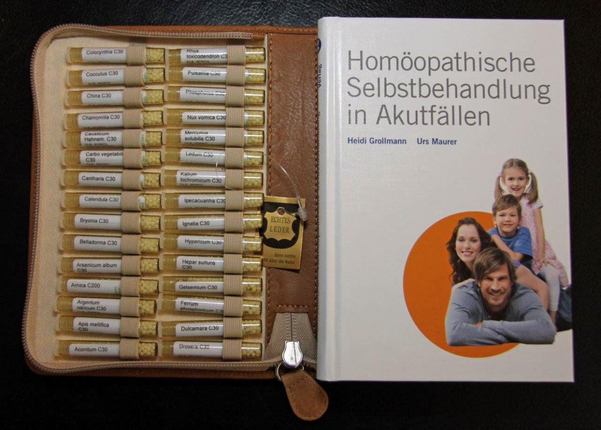 Homöopathische Notfallapotheke mit 38 Einzelmitteln in C-Potenzen in 60er Bio-Lederetui