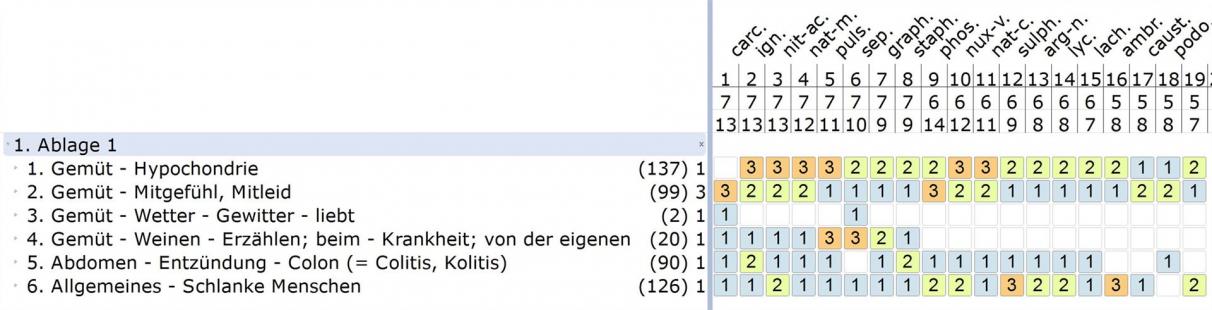• Auswertung der wichtigsten und auffälligsten Symptome (Repertorisation)