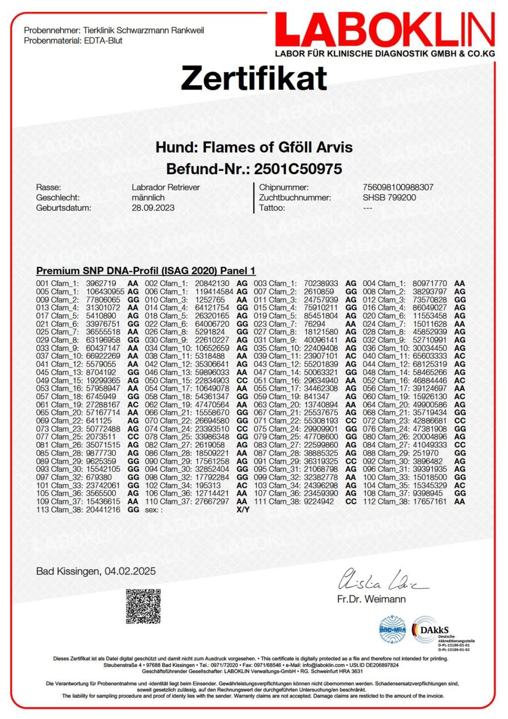 Arvis Zuchtzulassung