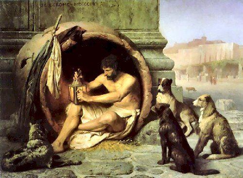 "Hunde-Philosophen", so nannte man in der griechischen Antike philosophierende Landstreicher, die schon damals hochnäsige und abgehobene akademische Philosophie nicht besonders ernst nahmen. Diogenes soll ein "Hundephilosoph" gewesen sein, man sagt ihm nach er habe in einer Tonne gelebt und dabei nichts vermisst.
